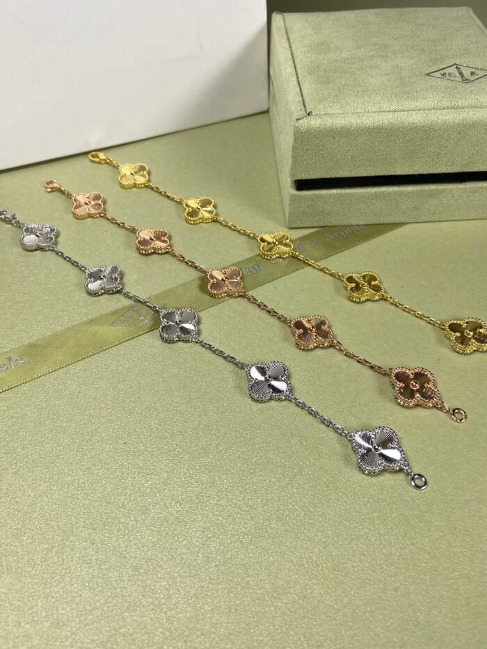 5 motifs, big and small clover, malachite, gold , rose gold, silver