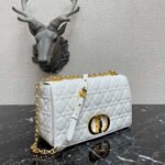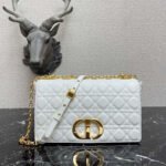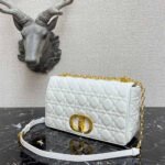 The new Dior Caro handbag is decorated with Cannage pattern stitching on gray calfskin, showing a unique stitch texture. The flap of this soft bag is equipped with a retro gold-toned metal rotating “CD” lock. The design is inspired by the unique closure of the Christian Dior perfume bottle. The detachable iconic “CD” link shoulder strap can be replaced with a wide embroidered shoulder strap, allowing you to create an elegant and fashionable look regardless of occasion, morning or evening.