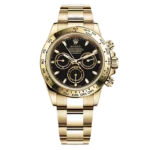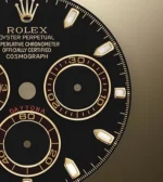 THIS OYSTER PERPETUAL COSMOGRAPH DAYTONA IN 18 KT YELLOW GOLD, WITH A BLACK DIAL AND AN OYSTER BRACELET, FEATURES 18 KT YELLOW GOLD BEZEL WITH ENGRAVED TACHYMETRIC SCALE.
