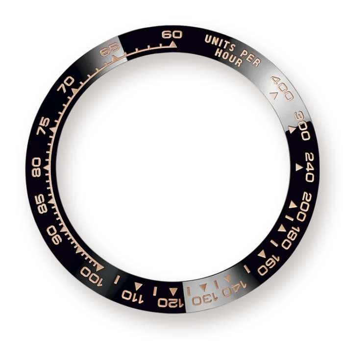 - Black monobloc Cerachrom bezel in ceramic with moulded tachymetric scale