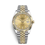 THIS OYSTER PERPETUAL DATEJUST 41 IN OYSTERSTEEL AND YELLOW GOLD FEATURES A CHAMPAGNE-COLOUR DIAL AND A JUBILEE BRACELET.