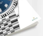 THIS OYSTER PERPETUAL DATEJUST 36 IN OYSTERSTEEL AND WHITE GOLD FEATURES A BRIGHT BLUE, DIAMOND-SET DIAL AND A JUBILEE BRACELET.