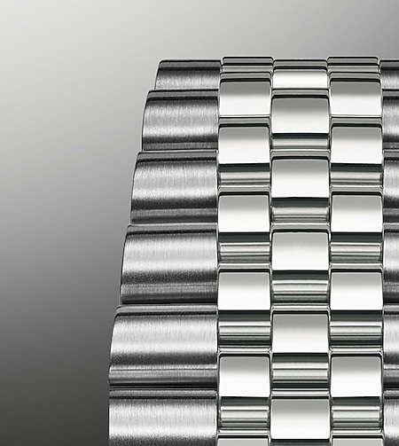 The design, development and production process of Rolex straps and buckles, as well as the rigorous tests that need to be passed, fully apply advanced technology. Like other components of the watch, the strap and buckle will also be inspected by a special person to ensure that the product is beautiful and flawless. This flexible and comfortable five-link Jubilee metal strap is specially designed for the Oyster Perpetual Datejust watch launched in 1945.