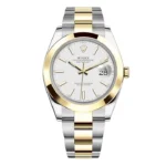 THIS OYSTER PERPETUAL DATEJUST 41 IN OYSTERSTEEL AND YELLOW GOLD FEATURES A WHITE DIAL AND AN OYSTER BRACELET.