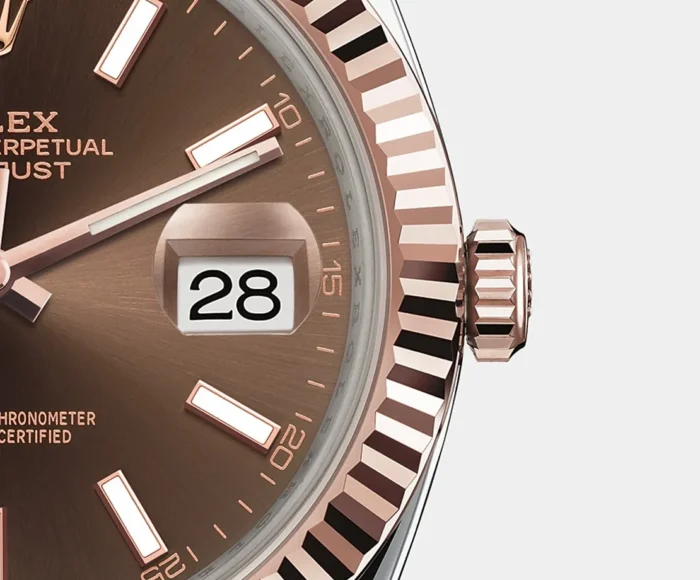 - Scratch-resistant sapphire, Cyclops lens over the date