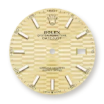 Characterised by hour markers fashioned from gold to prevent tarnishing, every Rolex dial is designed and manufactured in-house, largely by hand to ensure perfection.