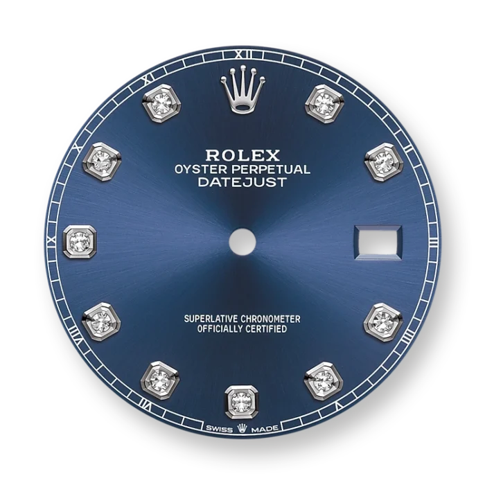 THIS OYSTER PERPETUAL DATEJUST 41 IN OYSTERSTEEL AND WHITE GOLD FEATURES A BRIGHT BLUE, DIAMOND-SET DIAL AND AN OYSTER BRACELET.
