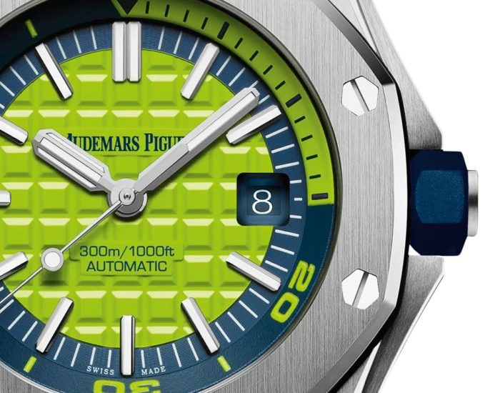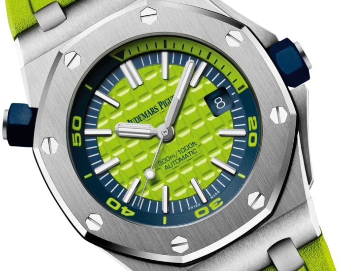 An effervescent new version of one of the bestsellers in the Royal Oak Offshore collection: the Royal Oak Offshore Diver “Funky Colour” in fizzy lime green. Available exclusively at Audemars Piguet boutiques.