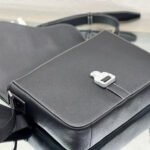 Aluminum buckle with Christian Dior signature and CD initials on flap closure