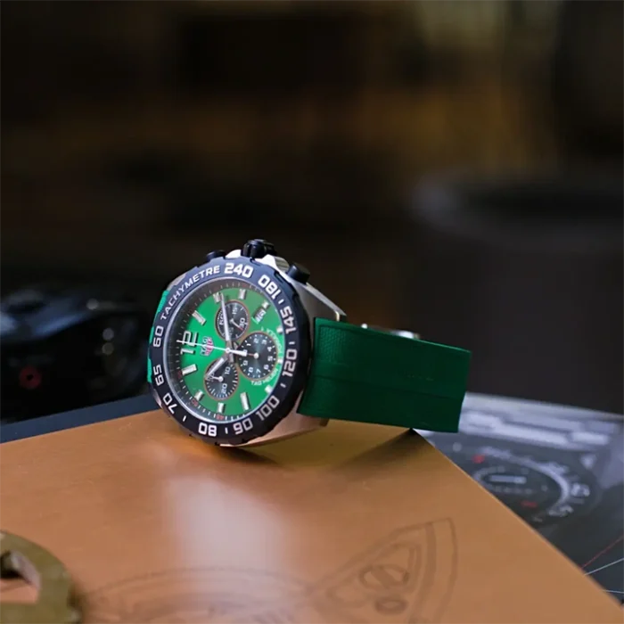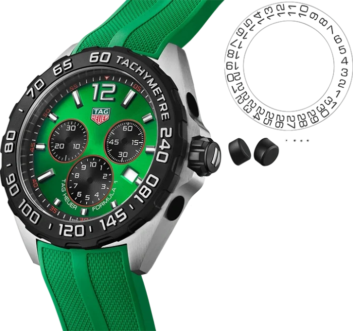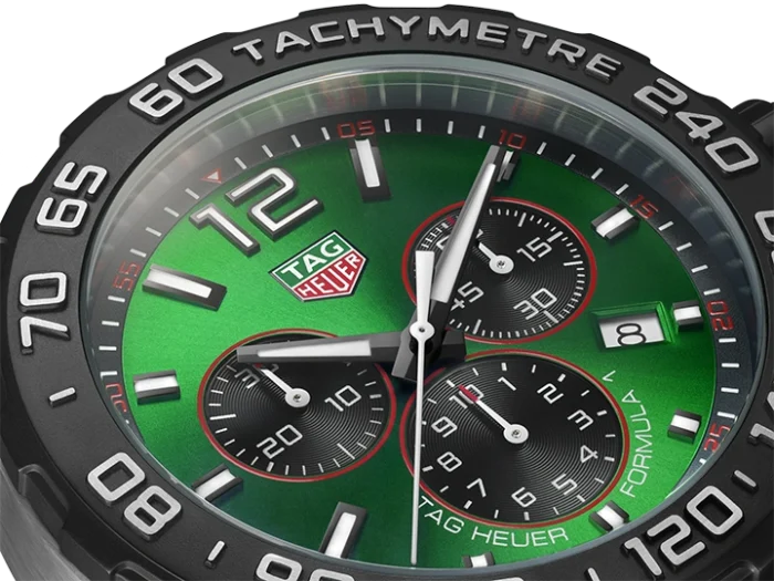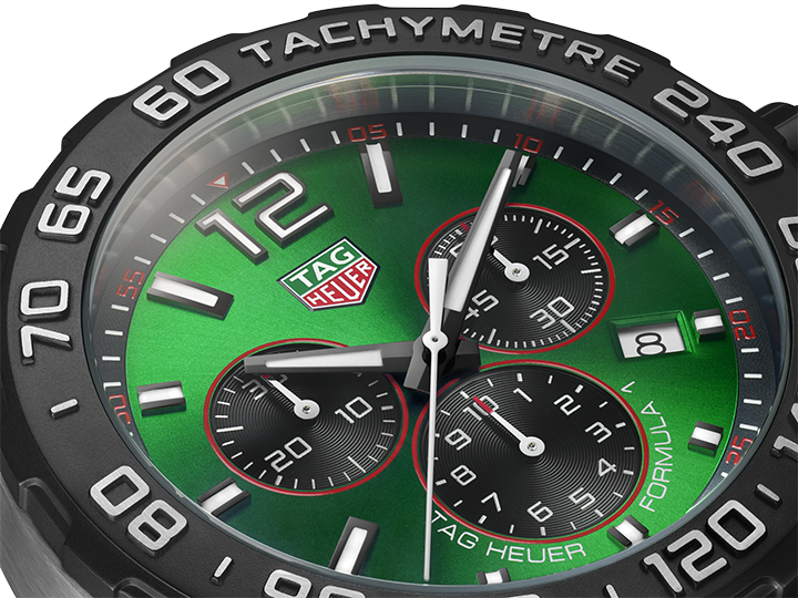 The energetic and brisk TAG Heuer Formula 1 is perfect for the fast-paced life. The green sunray brushed dial and matching strap are ready to race.