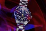 With an energetic blue dial with highlights in red and yellow and a sturdy 43mm steel case rated to 200m, this chronograph is in pole position.