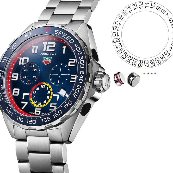 Secured by a steel bracelet with TAG Heuer engraving and a double safety system, this dynamic watch also comes with a pilot extension. Ready to race.