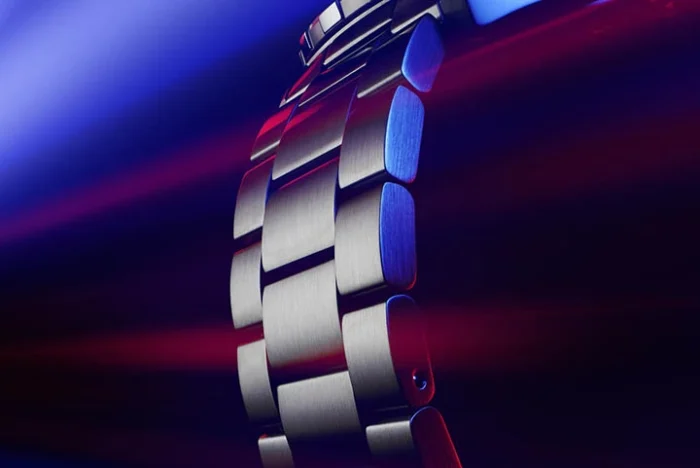 With an energetic blue dial with highlights in red and yellow and a sturdy 43mm steel case rated to 200m, this chronograph is in pole position.