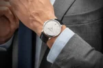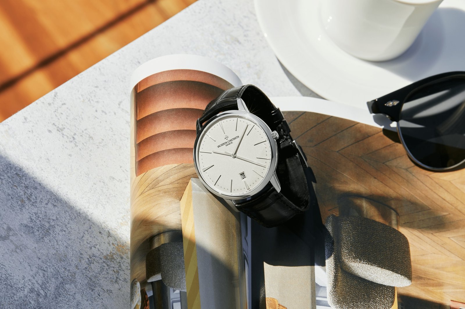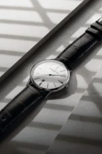 From the Patrimony Collection. Inspired by classic watches of the 1950s, this elegant timepiece boasts a round 18K white gold case, silvered dial and date display at 6 o’clock.